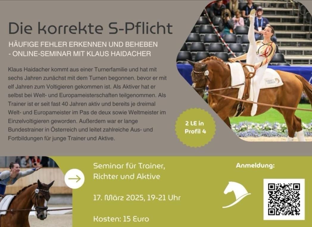 • Ausschreibung für den Lehrgang Teambetreuer im Voltigiersport für Erwachsene /Quereinsteiger/Helfer